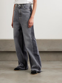 Stella McCartney's two-tone jeans brought an air of cool to the Spring '25 runway. They're cut for a mid-rise, wide-leg fit from weighty organic denim with frayed cuffs that pool at the floor. Wear yours with a cropped or tucked-in top so the embroidered logo is on show. Lower-Impact Materials. This product is made using at least 50% lower-impact materials or ingredients. Find out more about our NET SUSTAIN criteria here. Size & Fit - Fits true to size, take your normal size - High-rise, cut for a wide-leg fit - Mid-weight, non-stretchy denim - Size 26 jeans have an inside leg of 31"/ 78cm - Model is 175cm/ 5'9" and is wearing a size 26 Model measurements: - Bust: 81cm/ 32" - Waist: 62cm/ 24.5" - Hip: 89cm/ 35" Details & Care - Tonal-gray organic denim - Button and concealed zip fastening at front - 100% organic cotton - Machine wash