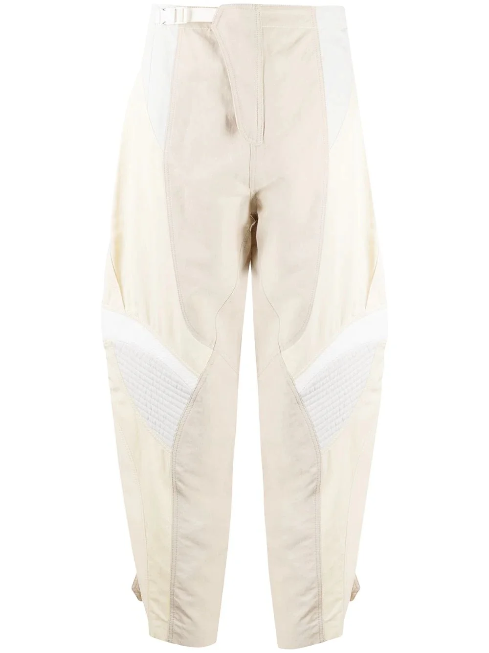 panelled tapered trousers Stella McCartney designs for the modern woman, introducing pieces such as these panelled tapered trousers. Designed with a side-release buckle fastening at the waist and tonal beige panels, these high-waisted pair promise to add a sporty touch to your casual ensemble. Highlights - Beige - Tapered design - Panelled design - High waist - Side-release buckle fastening at the waist - Concealed front fastening - Ribbed panel at the knee - Button tabs at the hem Imported Composition Outer: Polyamide 40%, Organic Cotton 36%, Flax 24% SIZE & FIT Model measurements Height 5 ft 10 in(1.77 m) Bust/Chest 32.28 in(82 cm) Hips 35.03 in(89 cm) Waist 25.19 in(64 cm) Measurement FRONT RISE 11.41 in(29 cm) HIPS 37.79 in(96 cm) WAIST 29.13 in(74 cm) Washing instructions Dry Clean Only