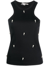 pearl-embellished ribbed tank top