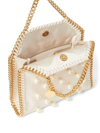 pearl-embellished tote bag Highlights - Beige - Faux-pearl detailing - Chain top handles - Snap fastening Made in Italy Composition Polyester 100% Washing instructions Read Manufacturer Guidelines
