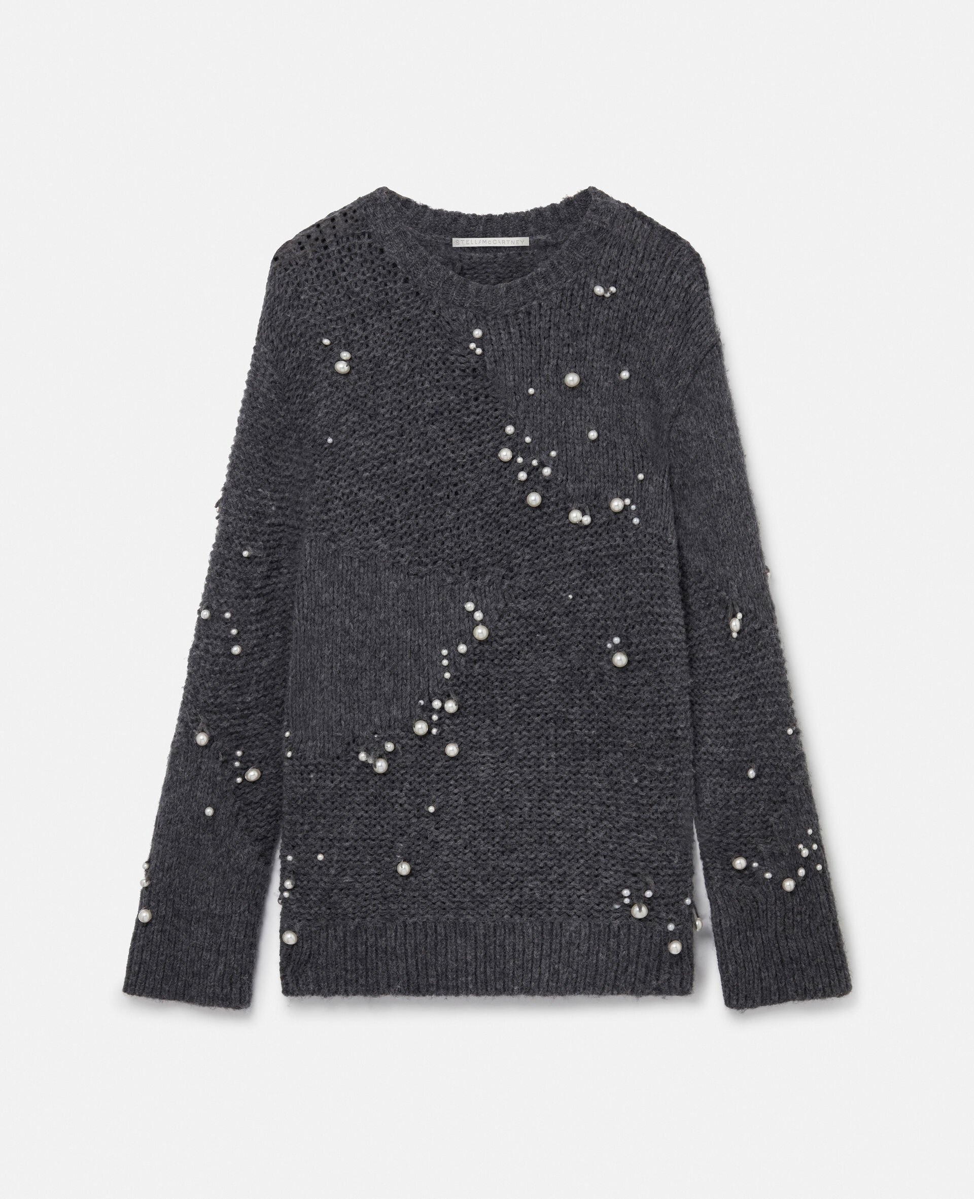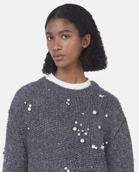 Reviving vintage aesthetics and styling them for a new generation, this jumper is punctuated with delicate faux pearl embroidery – a signature of Autumn 2023. The tactile jumper has a soft knit handfeel and long, voluminous sleeves. - Colour: Grey Melange - Charcoal grey melange - RAS alpaca wool and virgin wool-blend seed knit - Faux pearl embroidery - Round neck - Long sleeves - Ribbed neckline, cuffs and hem - Made in Italy Product Care & Fit Advice - Care: Dry clean only - Composition: 70% RAS alpaca wool, 23% nylon, 7% virgin wool - Fits true to size - Designed for an oversized fit - Mid-weight, semi-stretch fabric - Model is 5ft 10.5in./1.79m, is a size UK 6 and wears a size IT 40 (US 4-6/UK 8/FR 36)