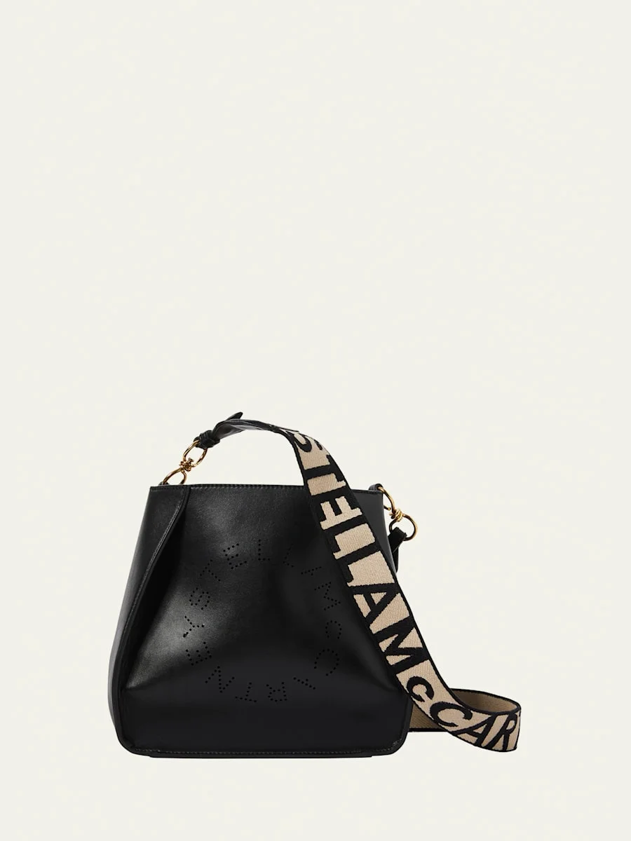 Stella McCartney faux-leather (polyurethane/polyester) crossbody bag is an oversized sporty everyday bag and the perfect color to pair with lights or darks Golden hardware; perforated logo at center. Convertible logo web shoulder strap, 16 1/2"-27" drop Open top with magnetic snap closure. Interior pocket. Care: Spot clean only with a soft damp cloth. 9.1"H x 9.1"W x 3.2"D. Item weights approx. 0.80 lb. Made in Italy. As a lifelong vegetarian, Stella McCartney never uses any leather, fur, skins or feather in any products for both ethical and environmental reasons, setting a standard for the use of alternative materials. Online Inquiries: BGS21_V6231| Store Inquiries: #2834844