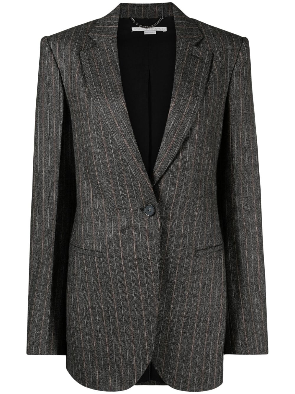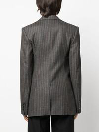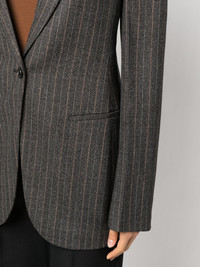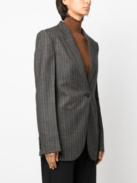 pinstripe single-breasted blazer Highlights - Charcoal grey - Wool-cotton blend - Pinstripe pattern - Peak lapels - Front button fastening - Long sleeves - Buttoned cuffs - Two front welt pockets - American rear vent - Straight hem - We've partnered with good on you — an independent agency that rates how brands perform in relation to their impact on the planet, people and animals, with a multi-criteria rating simplified to a five points scale. in order to be awarded our conscious label, larger brands need to score a minimum of four out of five ('good'), while smaller brands must score at least three out of five ('it's a start'). - This item comes from a brand rated four out of five ('good') by good on you. please note, this is a brand-level rating and does not guarantee that this product is made with conscious materials. - Learn more about what makes a product conscious on our conscious criteria page Imported Composition Lining: Viscose 52%, Cotton 48% Outer: Wool 100% SIZE & FIT Model measurements Height 5 ft 10 in(1.79 m) Bust/Chest 31.5 in(80 cm) Hips 35.4 in(90 cm) Waist 24.4 in(62 cm) FittingInformation Designed for a slim fit that sits just away from the body offering a close yet comfortable fit The internal shoulder pads offer a structured shape Made from a midweight non-stretch fabric This piece fits true to size – take your usual size