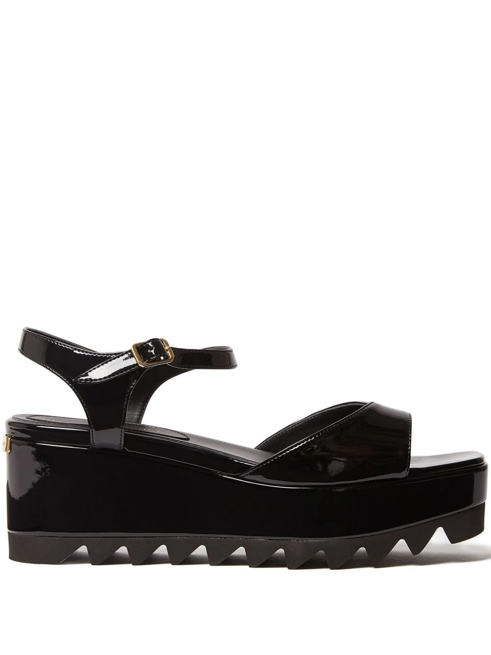 platform buckle heeled sandals Highlights - Black - Buckle-fastening - Platform-sole - Gold-tone hardware - Sawtooth-sole - Ankle-strap Made in Italy Composition Outer: Viscose 100%, Artificial Leather 100% Lining: Artificial Leather 100% Sole: Rubber 100%