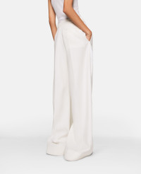 Item 6401943DU6559116 Savile Row tailoring is foundational to every Stella McCartney collection. For Summer 2024, these trousers are immaculately constructed from fully traceable RWS certified wool and tailored to a high-rise, wide-leg silhouette. Pair them with a white t-shirt, S-Wave trainers and a clean-cut blazer. - Colour: White - Chalk white - High-rise - Wide leg - Flat waistband - Front pleats - Concealed zip fastening Product Care & Fit Advice Dry clean only Composition: Main fabric: 100% RWS certified wool Size: Fits true to size Designed for a regular fit Midweight, non-stretch fabric
