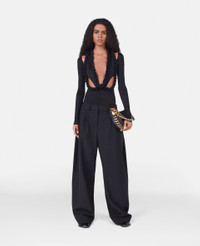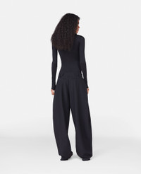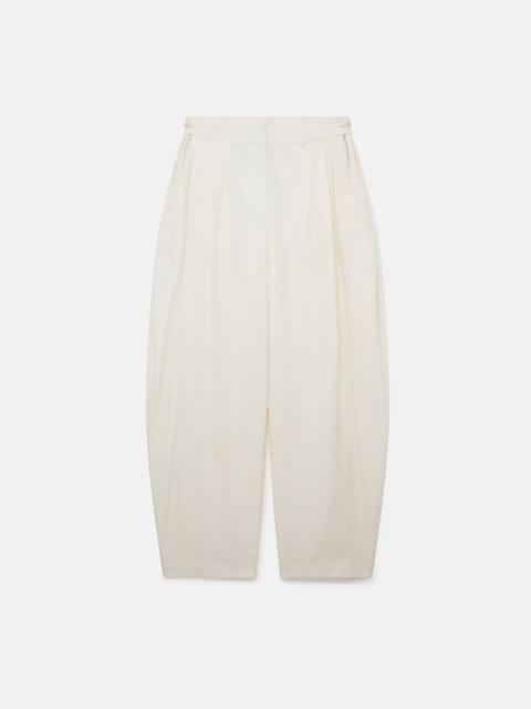 A moulded play on proportions, these wide-leg trousers from Stella McCartney feature soft, draped pleats at the front. The trousers are tailored from RWS wool, meaning it is fully traceable and has been produced to the highest ethical, environmental and social standards. - Colour: Black - Midnight black - RWS wool tailoring fabric - Flat waistband with button tabs at sides - Pleated front - Front and back darts for fit - Zip fly with hook-and-bar fastening, and button secure - Two side slip pockets, and two back jetted pockets - Wide leg - Made in Italy Product Care & Fit Advice - Care: Dry clean only - Composition: 100% wool - Fits true to size - Mid-rise, wide leg - Designed for a regular fit - Mid-weight, non-stretch fabric