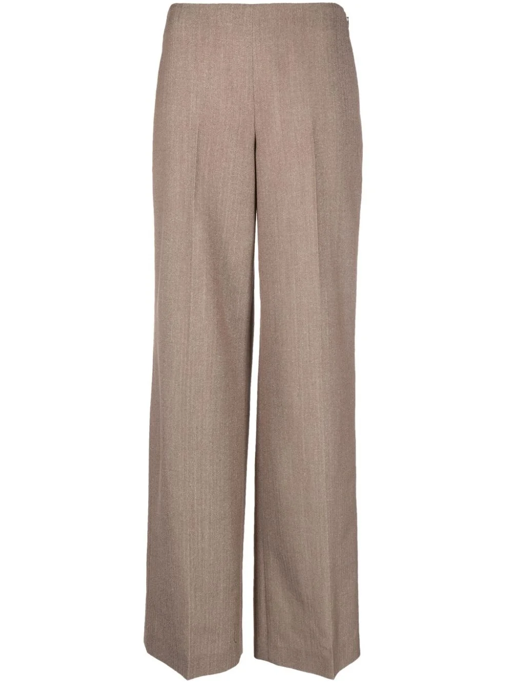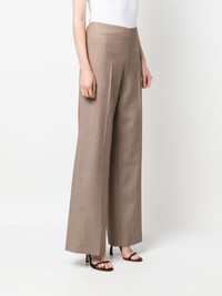 pleated wide-leg trousers Highlights - Light brown - Wool blend - Wide leg - Pleat detailing - High waist - Rear welt pocket Imported Composition Wool 82%, Polyester 18% SIZE & FIT Model measurements Height 5 ft 10 in(1.78 m) Bust/Chest 31.49 in(80 cm) Hips 36.22 in(92 cm) Waist 25.59 in(65 cm) Washing instructions Dry Clean Only