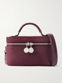Stella McCartney's 'Falabella' bag is inspired by the shape of a vanity case. Made from brushed vegetarian material, it's accented with the signature chain detail along the top handle and has an optional shoulder strap. Store a few items of makeup, your phone and cardholder inside. Details & Care - Burgundy brushed vegetarian material - Top handle, shoulder strap - Internal slip pocket - Synthetic material lining - Two-way zip fastening through front - Comes with dust bag