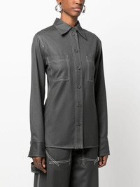 pointed-collar flannel shirt Highlights - Charcoal grey - Wool - Flannel - Buttoned-cuff sleeves - Pointed flat collar - Front button fastening - Long sleeves - Two front patch pockets - Straight hem Imported Composition Wool 100% SIZE & FIT Model measurements Height 5 ft 10 in(1.77 m) Bust/Chest 29.92 in(76 cm) Hips 34.25 in(87 cm) Waist 23.62 in(60 cm) FittingInformation Designed for a slim fit that sits just away from the body offering a close yet comfortable fit Made from a midweight non-stretch fabric This piece fits true to size – take your usual size Washing instructions Dry Clean Only