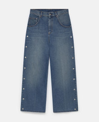 Item 6D03373SQH004233 Stella McCartney’s organic cotton denim line-up is refreshed for Winter 2024. This pair of bootcut jeans is shaped to a mid-rise waist, finished with a faded vintage wash and embellished with studs along the side. Pair them with the coordinating shirt and continue our popper story from the runway. - Color: Classic wash blue denim - Faded vintage wash - Mid-rise - Stud embellishment - Four pockets - Bootcut - Contrast cuffs - Button and zipper - fly fastening - Made in Italy Product Care & Fit Advice Care: Dry clean only Composition: 100% Cotton Fit: Regular fit Sizing: Take your usual size