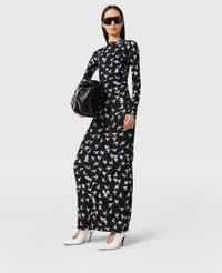 Item 6J03353SPZ891000 Summer 2025 is led by a message to Save What You Love, celebrating birds and calling for their protection. This slinky dress features an all-over dove print, hand-painted in our London atelier. Spun from stretchy mesh, it’s shaped to a long-sleeve, crewneck silhouette that hugs the form whilst floating over the body. - Color: Black/White - Dove print - Crewneck - Long sleeve - Ankle-length hem - Stretch-mesh texture - Zipper fastening - Made in Portugal Product Care & Fit Advice - Care: Dry clean only - Composition: 100% Polyamide - Fit: Regular fit - Sizing: Take your usual size - Model wears a size 40 IT or 8 UK