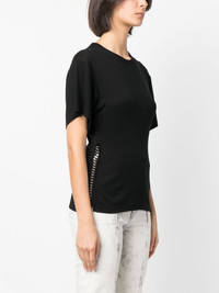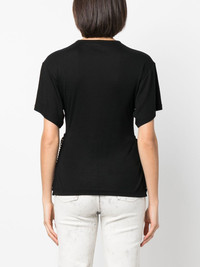 raglan-sleeved T-shirt Highlights - Black - Lyocell-cotton blend - Crossover strap detail - Round neck - Short raglan sleeves Imported Composition Aluminium 100%, Lyocell 67%, Cotton 33% SIZE & FIT Model measurements Height 5 ft 11 in(1.8 m) Bust/Chest 31.49 in(80 cm) Hips 35.43 in(90 cm) Waist 24.4 in(62 cm) FittingInformation This piece fits true to size. We recommend you get your regular size Cut for a slim fit Made with a mid-weight fabric Washing instructions Hand Wash