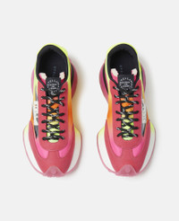 Item 810025E000135596 The Reclypse is a sustainable innovation in luxury trainers, crafted from vegan, recycled or plant-based materials. Taking a step towards circularity, its lining is made from ECONYL® regenerated nylon – with some styles including a recycled polyester upper and all having a tractor sole using bio-based, renewable materials. - Color: Degrade Neon - Lace-up Sneakers - Stella McCartney logo on the side and back - Faded multicolor design - Care: Spot clean only with soft damp cloth - Composition: Upper 73% Recycled Polyester, 11% Polyurethane, 9% Polyamide, 7% Polyester, Lining 78% Recycled Polyamide, 22% Elastane, Outsole 60% Eco Thermoplastic Polyurethane, 40% Polyurethane Product Care & Fit Advice - Care: Spot clean only with soft damp cloth - Composition: 9% Polyamide, 11% polyurethane, 73% recycled polyester, 7% polyester - 40 mm sole - True to size - All of our shoes and accessories are made from non-leather materials as part of our cruelty-free ethos.