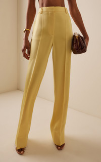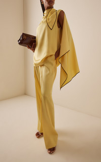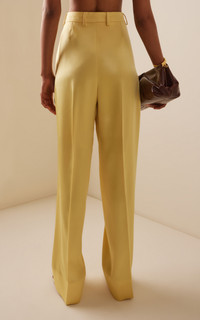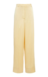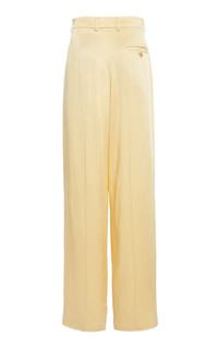 PRODUCT DETAILS - Relaxed fit, drop rise, wide-leg silhouette, side pockets, elongated inseam - Concealed hook and zip fastening along front - Unlined - Composition: 73% Acetate, 27% Viscose - Color: yellow - Dry clean - Resort '25