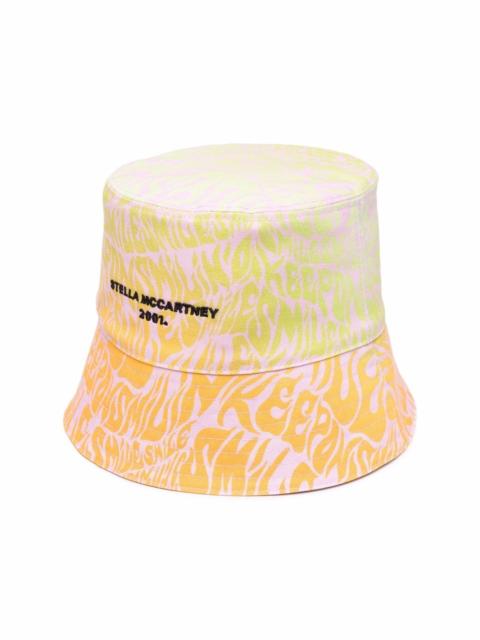 reversible bucket hat Stella McCartney's SS22 collection marries the nostalgic with the contemporary, connecting the vibes of Y2K music subcultures to the technological youth of today. Designed to be reversible, this cotton bucket hat is defined by the all-over print that reads 'Keep On Smilin'' and the embroidered 2001 logo to the front. Highlights - Black/blue - Cotton - Reversible - Slogan print - Embroidered logo to the front - Tonal stitching Made in Italy Composition Cotton 100% SIZE & FIT Measurement BRIM 2.36 in(6 cm) CIRCUMFERENCE 22.44 in(57 cm)