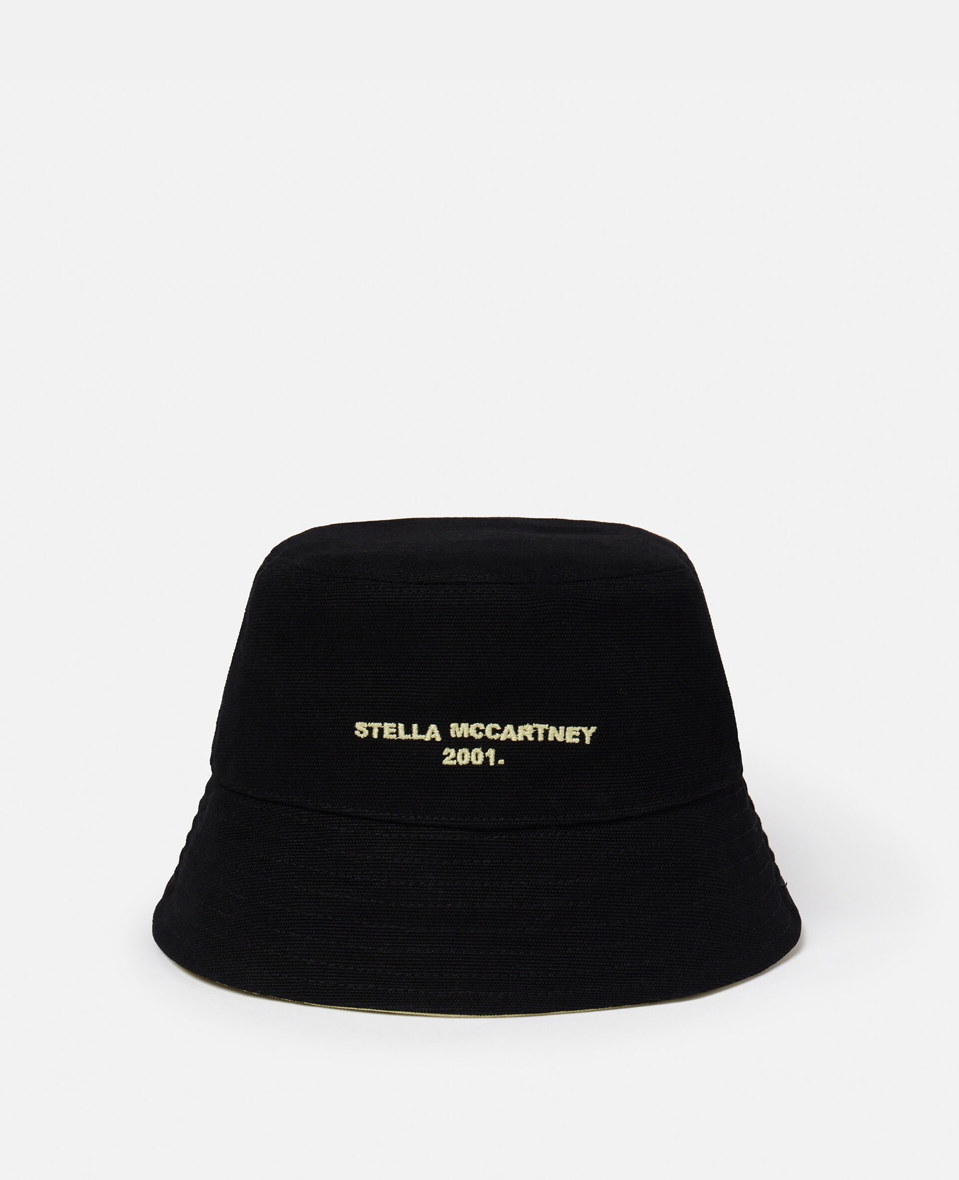 - Color: Black/Banana Yellow - Reversible bucket hat - Stella McCartney 2001. logo - Made in Italy - Composition: 99% Organic Cotton, 1% Acrylic - Sustainable Elements: Main Fabric and Lining in sustainable GOTS® cotton, grown without harmful pesticides; Webbing in 100% recycled polyester Product Care & Fit Advice - Measurements: 8.9x5.7x8.9 inches - Weighs approximately 0.29 lbs.