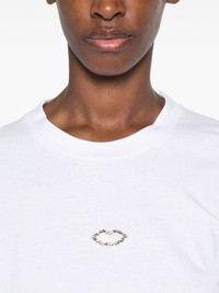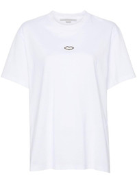 crystal lips T-shirt Highlights - White - Cotton - Lightweight jersey - Crystal embellishment - Lips patch - Crew neck - Short sleeves - Straight hem - We've partnered with good on you — an independent agency that rates how brands perform in relation to their impact on the planet, people and animals, with a multi-criteria rating simplified to a five points scale. in order to be awarded our conscious label, larger brands need to score a minimum of four out of five ('good'), while smaller brands must score at least three out of five ('it's a start'). - This item comes from a brand rated four out of five ('good') by good on you at the time it was added on farfetch. please note, this is a brand-level rating and does not guarantee that this product is made with conscious materials. - Learn more about what makes a product conscious on our conscious criteria page Imported Composition Sustainable Cotton 70%, Acetate 59%, Polyester 41%, Cotton 30% SIZE & FIT Model measurements Height 5 ft 10 in(1.77 m) Bust/Chest 29.92 in(76 cm) Hips 33.46 in(85 cm) Waist 23.62 in(60 cm) FittingInformation Designed to be unstructured, offering a loose fit throughout Made from a midweight non-stretch fabric, this piece offers minimal elasticity when worn