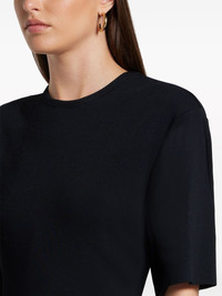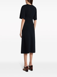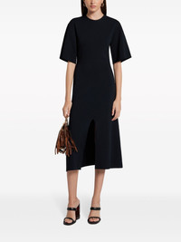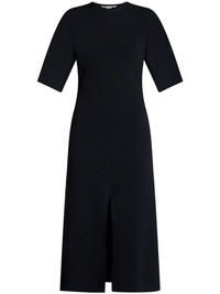 ribbed-knit midi dress Highlights - Black - Ribbed knit - Round neck - Half-length sleeves - Front slit - Straight hem - Mid-length - Slip-on style - We've partnered with good on you â an independent agency that rates how brands perform in relation to their impact on the planet, people and animals, with a multi-criteria rating simplified to a five points scale. in order to be awarded our conscious label, larger brands need to score a minimum of four out of five ('good'), while smaller brands must score at least three out of five ('it's a start'). - This item comes from a brand rated four out of five ('good') by good on you at the time it was added on farfetch. please note, this is a brand-level rating and does not guarantee that this product is made with conscious materials. - Learn more about what makes a product conscious on our conscious criteria page Made in Italy Composition Viscose 83%, Polyester 17%
