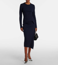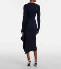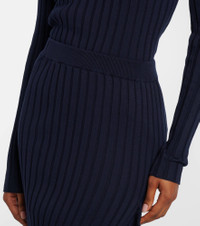 Ribbed-knit ruffled cotton midi skirt