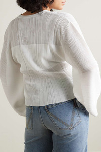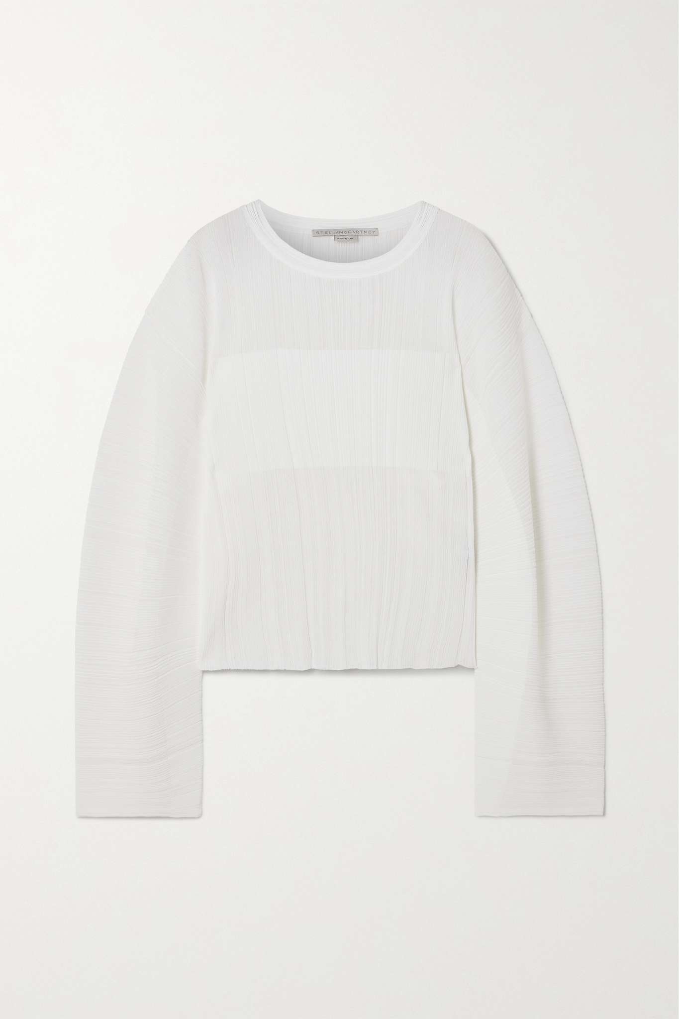 EDITORS'NOTES Stella McCartney's knitwear is always effortless. Designed for a loose fit, this sweater is made from lightweight ribbed-knit with wide sleeves and a lettuce hem. Underpin the sheerness with a tonal camisole or bodysuit. SIZE & FIT - Fits true to size, take your normal size - Designed for a slightly loose fit - Lightweight, stretchy fabric - S/M/L sizing DETAILS & CARE - White ribbed-knit - Slips on - 84% viscose, 16% polyamide - Dry clean