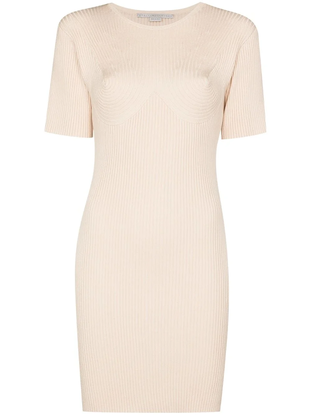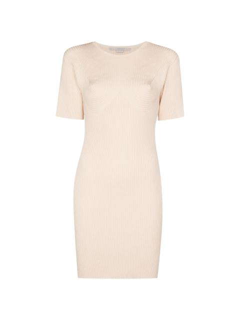 ribbed knitted mini dress Stella McCartney has always been close-knit to your heart and wardrobe. After looking at this ribbed knitted mini dress it's easy to see why. Hugging your figure with a fitted silhouette and easy to style for various occasions, this outfit is a great look. Highlights - Oat white - Cotton blend - Round neck - Fitted silhouette - Straight hem - Short sleeves Made in Italy Composition Cotton 80%, Polyamide 17%, Elastane 3% SIZE & FIT Model measurements Height 5 ft 10 in(1.78 m) Bust/Chest 33.07 in(84 cm) Hips 35.03 in(89 cm) Waist 25.19 in(64 cm) FittingInformation This piece fits true to size. We recommend you get your regular size Cut for a slim fit Made with a mid-weight stretch fabric Washing instructions Dry Clean Only