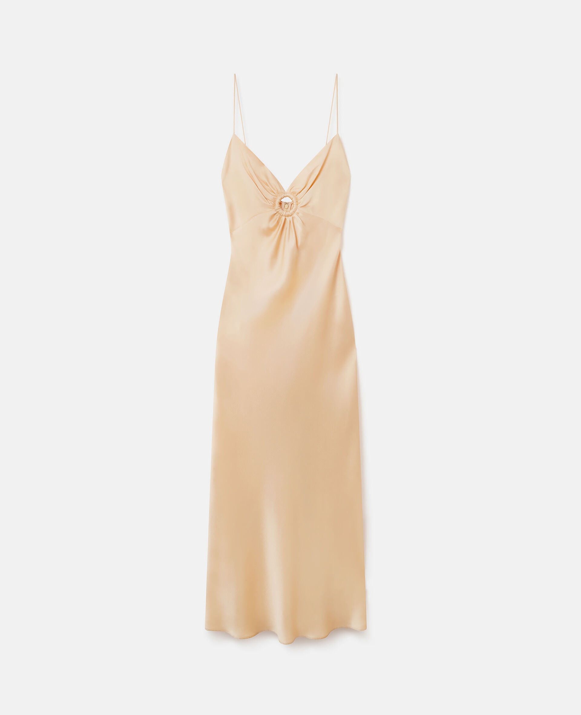 This light peach maxi dress is crafted from a forest-friendly viscose fluid double satin – a plant-based fibre sourced from responsibly managed forests. It features a deep neckline bursting into petal-like cut-outs, with a fabric-covered ring creating a focal point. - Colour: Custard - Light peach - Forest-friendly viscose-blend double satin - V-neck - Spaghetti straps - Low back - Fabric-covered ring and cut-out at midriff - Concealed back zip fastening - Maxi length - Made in Bulgaria Product Care & Fit Advice - Care: Dry clean only - Composition: Main fabric: 64% acetate, 36% viscose, Ring: 100% polymethyl methacrylate