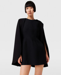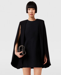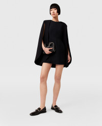 Item 6A04223EU605100044 Size: Fits true to size Designed for a regular fit Midweight, non-stretch fabric - Cour: Black - Pitch black - Round neck - Long cape - Thigh-length hem - Zip fastening - Made in Romania Product Care & Fit Advice Cut from a blend of forest-friendly viscose and RWS-certified wool, this flattering mini dress begins at a round neckline and streams into a clean-cut cape that finishes on a thigh-skimming hem. Tailored with immaculate precision, it’s indicative of Stella McCartney’s tailoring skillset, acquired on Savile Row. Pair it with some stiletto heels to maximise feminine power. Care: Dry clean only Composition: Main fabric: 60% viscose 40% wool
