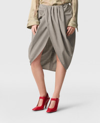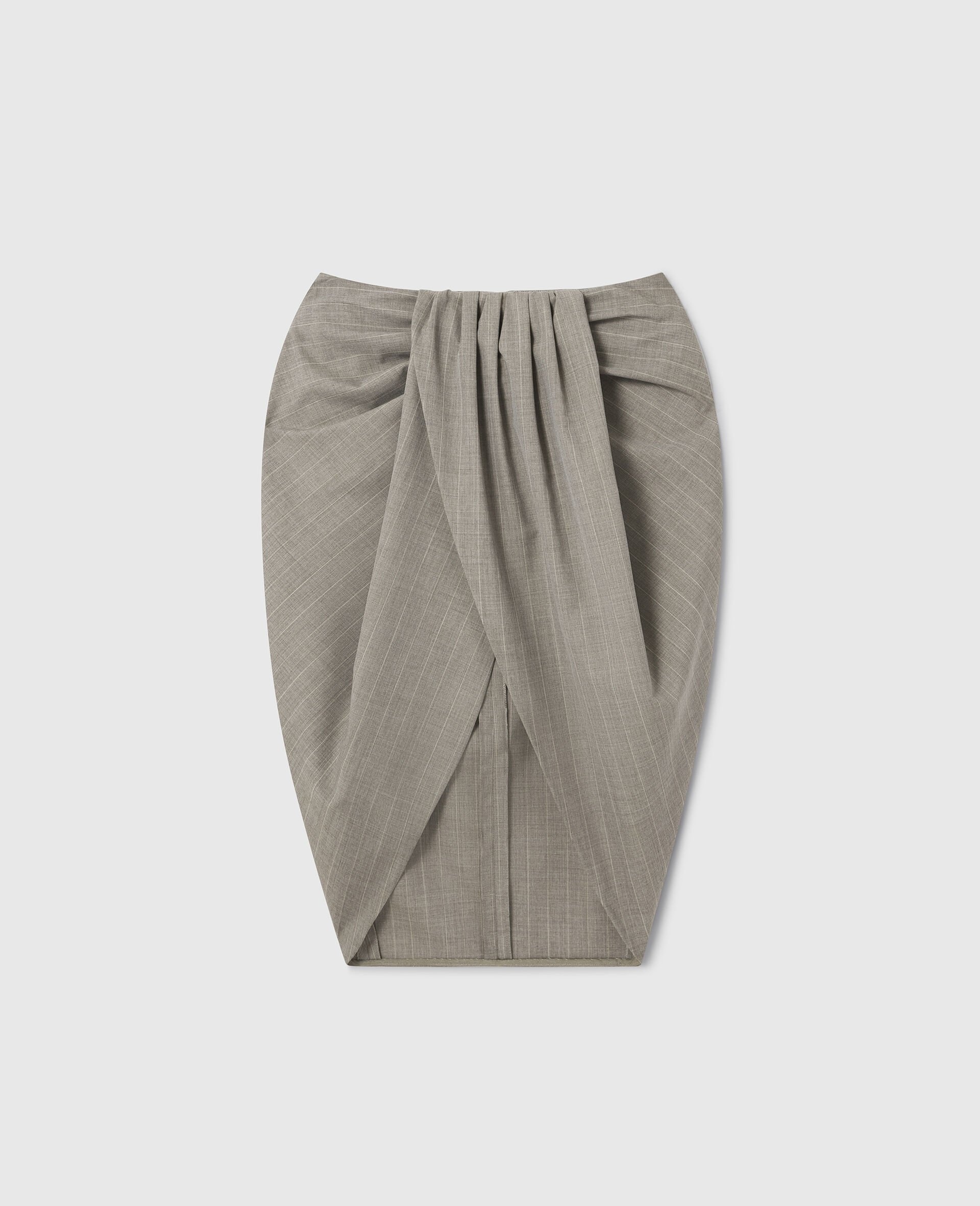 Item 6301403FR7531907 Savile Row tailoring is foundational to every Stella McCartney collection, embodying her signature masculine-yet-feminine perspective. For Summer 2025, this wrapped mini skirt reinterprets these codes; immaculately constructed from fully traceable RWS-certified wool and draped to a ruched, knee-grazing hem. Pair it with the coordinating blazer. - Color: Gray - Pinstripe - Ruched waistband - Pleated, gathered skirt - Two pockets - Calf-length hem - Zipper fastening - Made in Italy Product Care & Fit Advice - Care: Dry clean only - Composition: 100% Wool - Fit: Regular fit - Sizing: Take your usual size - Model is 178cm or 5' 10" and wears a size 40 IT or 8 UK