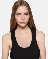 Item 6A03753DU6501000 The little black dress – an original, timeless wardrobe staple. Our Summer 2024 edition is woven from organic cotton and shaped to a simplistic tank-outline that skims the torso, holding it in a soft, adaptable stretch, before extending out to a shapely kick-flared hem. - Colour: Black - Midnight black - Sleeveless - Scoop neck - Ribbed trims - Flared skirt - Knee-length hem - Slips on Product Care & Fit Advice Dry clean only Composition: Main fabric: 41% polyamide, 30% cotton, 29% flax Size: Fits true to size Designed for a slim fit Midweight, stretchy fabric