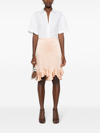 ruffled satin midi skirt Highlights - Blush beige - Satin weave - Ruffled detailing - Side zip fastening Made in Italy Composition Viscose 59%, Acetate 41% SIZE & FIT Model measurements Height 5 ft 10 in(1.78 m) Bust/Chest 31.49 in(80 cm) Hips 37 in(94 cm) Waist 23.62 in(60 cm) FittingInformation This mini-length skirt is intended to be worn just below the waist Made from a lightweight non-stretch fabric This piece fits true to size – take your usual size