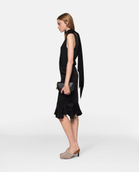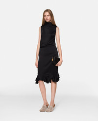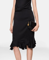 Item 6301003BU3701000 Spun from a forest-friendly viscose blend with a lustrous, satin finish, this skirt begins at a mid-rise waist, skimming the hips and thighs before finishing at a midi-length. Slip it on with some kitten heels and watch as its bouncy, ruffled hem dances by the knees. - Colour: Black - Midnight black - Lustrous satin finish - Mid-rise - Knee-length - Ruffled hem - Zip fastening Product Care & Fit Advice Dry clean only Composition: Main fabric: 59% viscose, 41% acetate Size: Fits true to size Designed for a regular fit Midweight, stretch fabric