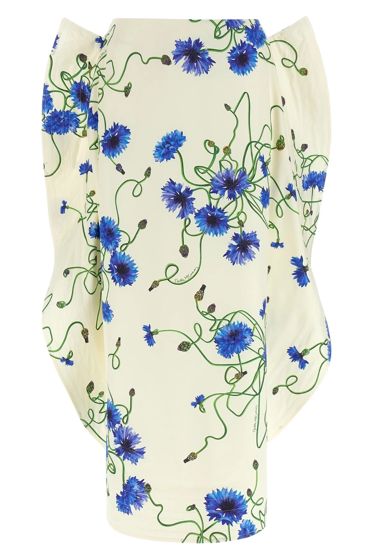 cod. 6301803HS3674320 Long skirt in all-over floral print cotton, high waist, tone-on-tone double layer ruffles, back zip closure, side slits, rounded hem. Color: Multicolor Size & Fit: true to size fit Composition: 100% cotton Made in: Italy