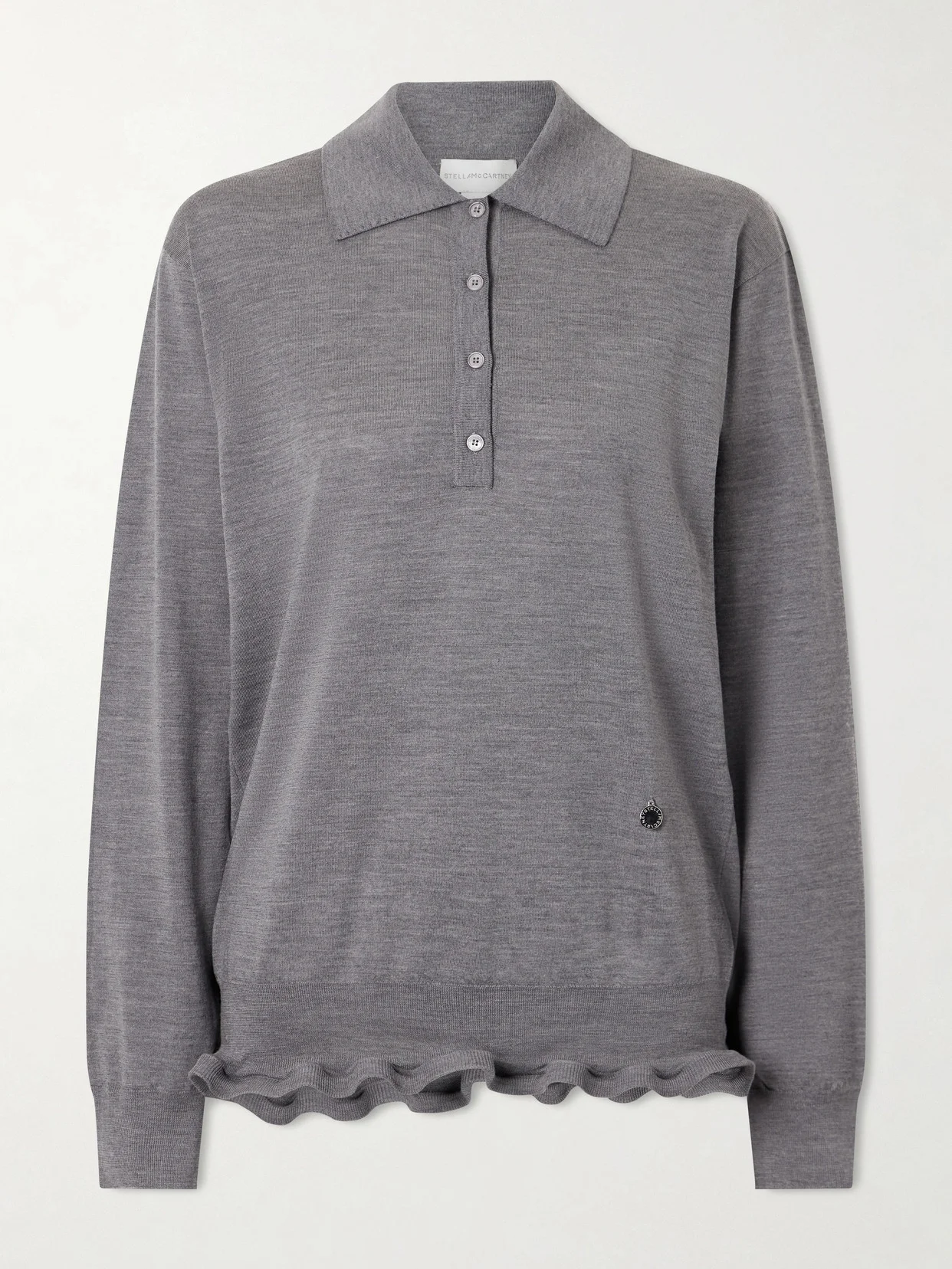 Stella McCartney's polo shirt was worn as part of the second look on the Spring '26 runway, styled with a mini skirt and crisp shirt. It's knitted from fine wool in a relaxed fit and finished with a ruffle along the hem.