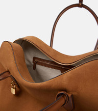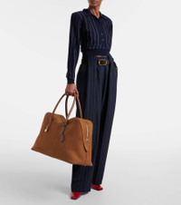 Handcrafted by artisans in Italy, the Ryder shoulder bag from Stella McCartney is crafted using an innovative vegan alternative to animal leather. Its sculptural silhouette is complemented by two curved top handles, logo-engraved padlock, and secure zipped top closure. Product Details - Material: faux leather - Lining: fabric - Made in Italy - Designer color name: Brandy - Item color: brown - Hardware color: gold - Top handles - Closure: two-way zipped top - Protective feet - Item number: P01019039 Size & Fit - Max. height 35cm-14" - Max. width 60cm-23.5" - Max. depth 22cm-8.5" - Length of handles 66cm-26"