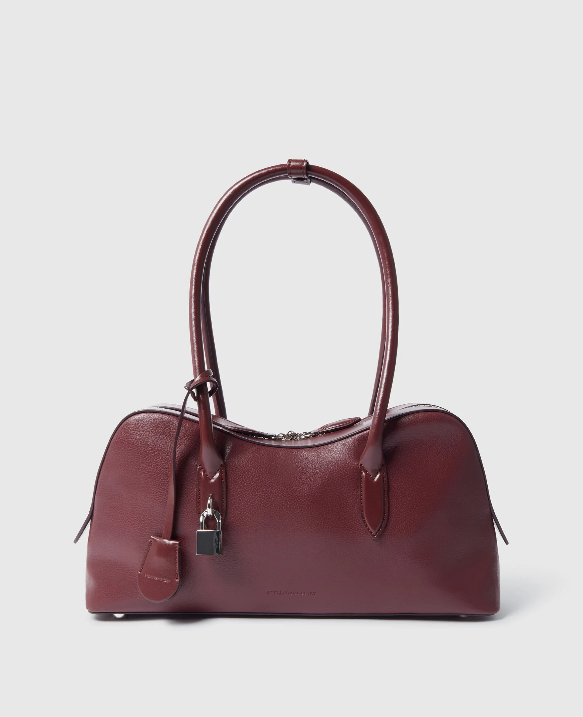 Item 7B0138WP05336017U Reimagined for Fall 2025 in seasonal burgundy tones and silver hardware, the Stella McCartney Ryder bag is handcrafted by artisans in Italy from cruelty-free alternatives to animal leather using recycled and grape-based innovations. The sculptural silhouette honors the strength, beauty and power of Stella’s favorite animal – the horse. The vegan Ryder bag features a logo-engraved padlock and effortlessly fits a phone, wallet and daily essentials. - Color: Bordeaux - Comfortably fits all phones and wallets alongside small daily essentials - Cruelty-free, vegan alternative to animal leather - GOTS-certified Canopy hemp lining - Two top handles - One main compartment - One internal slip pocket - Zipper fastening - Logo-engraved brass padlock - Brass hardware - Handcrafted in Italy - All of our shoes and accessories are made from non-leather materials in keeping with our cruelty-free ethos. Product Care & Fit Advice - Care: Spot clean only with soft damp cloth. - Composition: 100% Polyamide - This is a coated fabric - Fit: Fits all phones and wallets alongside small daily essentials. - Size: 14.1 x 6.8 x 3.9 in - Handle drop: 8.2 in - Weighs approximately: 20.6 oz