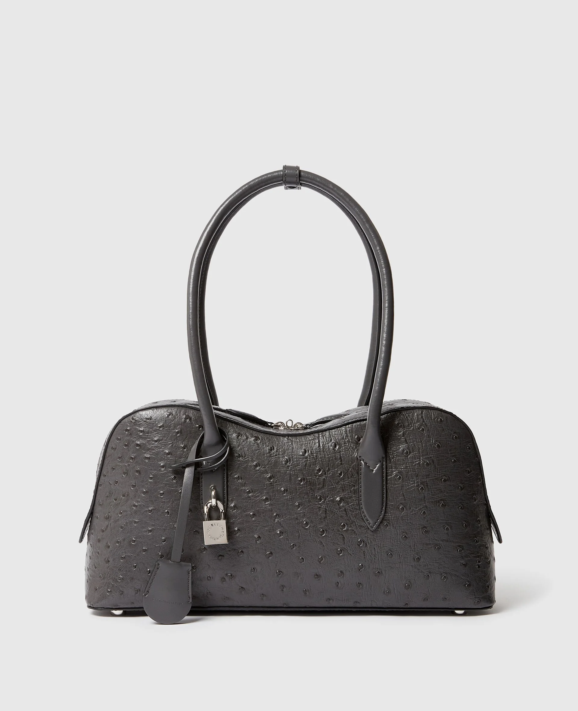 Item 7B0138WP06291203U Reimagined for Spring 2026 in seasonal tones and silver hardware, the Stella McCartney Ryder bag is handcrafted by artisans in Italy from a vegan, cruelty-free alternative to ostrich leather. The sculptural silhouette honours the strength, beauty and power of Stella’s favourite animal – the horse. The vegan Ryder bag features a logo-engraved padlock and effortlessly fits a phone, wallet and daily essentials. - Colour: Slate - Comfortably fits all phones and wallets alongside small daily essentials - YATAY M vegan alternative to ostrich leather - GOTS-certified organic hemp lining - Two top handles - One main compartment - One internal slip pocket - Zip fastening - Logo-engraved brass padlock - Palladium hardware - Handcrafted in Italy - All of our shoes and accessories are made from non-leather materials in keeping with our cruelty-free ethos Product Care & Fit Advice - Care: Spot clean only with soft damp cloth. - Composition: 100% Polyester - This is a coated fabric - Fit: Comfortsbly fits all phones and wallets alongside small daily essentials. - Size: 36 x 17.5 x 19.5cm - Handle drop: 21cm