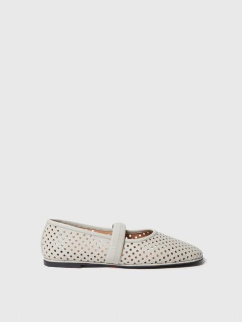 Item 810528KP0271000 The Ryder ballet flat is refreshed for Summer 2025. Sculpted from our soft, buttery vegan alternative to animal leather, they’re shaped to a feminine ballerina outline with all-over laser-cut perforation – in step with the season’s bags and ready-to-wear wardrobe. Finished with a Mary Jane snap closure that can be fastened comfortably across the foot. - Color: Black - Perforated vegan alternative to animal leather - Fully lined - Snap closure - Handcrafted in Italy Product Care & Fit Advice Care: Spot clean only with soft damp cloth Composition: Upper 73% Polyurethane, 27% recycled polyester - Fit: True to size - Heel height: 0.01 in - All of our shoes and accessories are made from non-leather materials in keeping with our cruelty-free ethos.