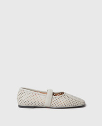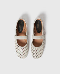 Item 810528KP0279529 The Ryder ballet flat is refreshed for Summer 2025. Sculpted from our soft, buttery vegan alternative to animal leather, they’re shaped to a feminine ballerina outline with all-over laser-cut perforation – in step with the season’s bags and ready-to-wear wardrobe. Finished with a Mary Jane snap closure that can be fastened comfortably across the foot. - Color: Beige - Perforated vegan alternative to animal leather - Fully lined - Snap closure - Handcrafted in Italy Product Care & Fit Advice Care: Spot clean only with soft damp cloth Composition: Upper 73% Polyurethane, 27% recycled polyester - Fit: True to size - Heel height: 0.01 in - All of our shoes and accessories are made from non-leather materials in keeping with our cruelty-free ethos.