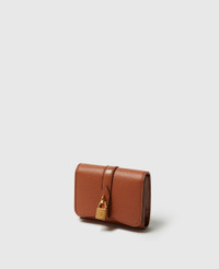 Item 7P0080WP05335742U The natural companion to our iconic Ryder bag, this trifold wallet is carefully considered and consciously handcrafted in Italy. From its pocket organization to its brass lock on the front, this compact purse includes room for notes, small change and up to six credit cards. - Color: Brandy - Vegan alternative to leather - Signature brass padlock charm - Ryder-inspired curved flap - Bills slip pocket - Six card slots - Press-stud fastening - Recycled polyester monogram lining - Handcrafted in Italy - All of our shoes and accessories are made from non-leather materials in keeping with our cruelty-free ethos. Product Care & Fit Advice - Care: Spot clean only with soft damp cloth. - Composition: 100% Polyamide - Size: 4.1 x 3.2 x 0.7 in - Weighs approximately 3.8 oz