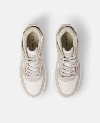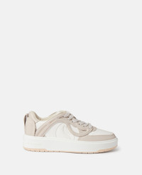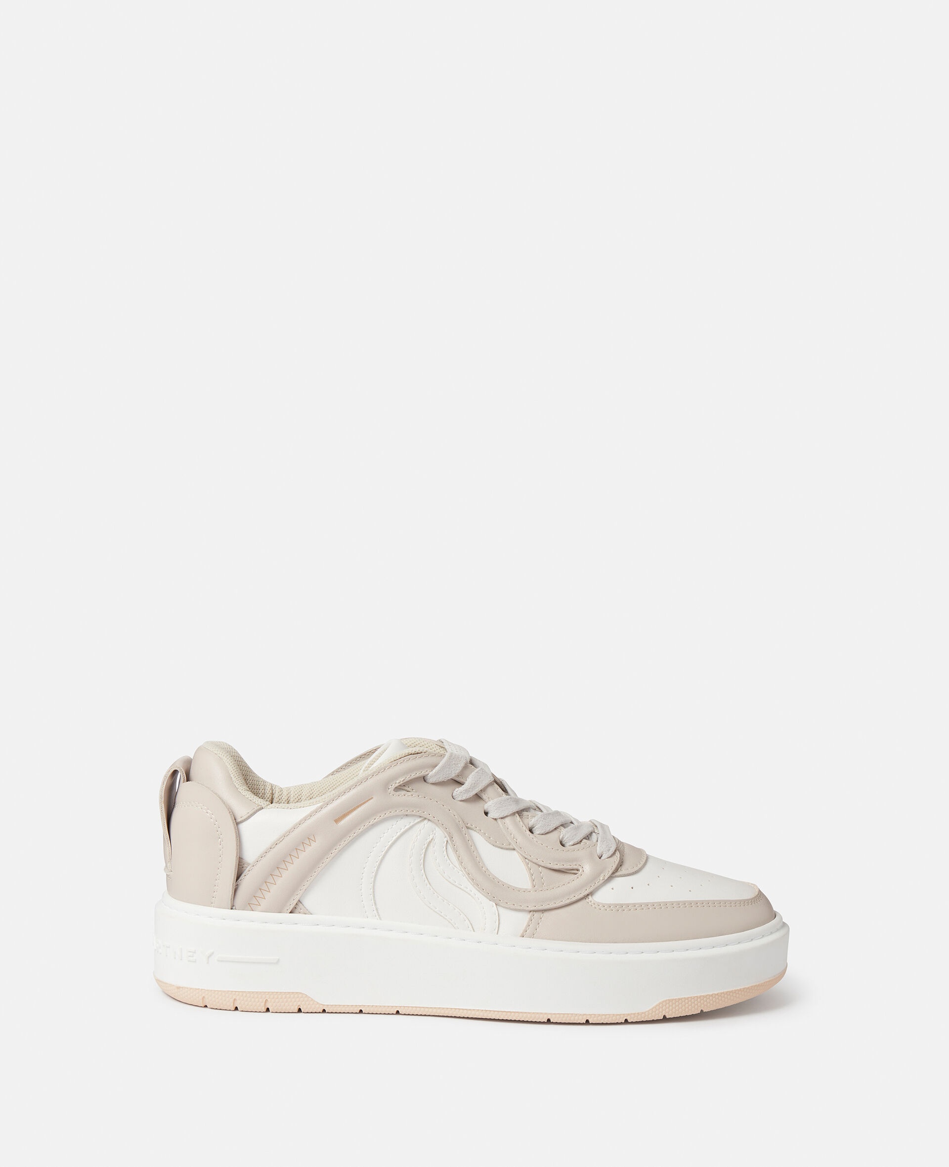 Step into a new season of conscious values and Stella’s circular vision with the S-Wave 1 trainers. Our most sustainable trainers to date, the upper is crafted from a plant-based alternative to animal leather, sourced from grape waste, and the most environmentally responsible polyurethane. Its sole is created using pre-consumer recycled TPU, while its solvent-less suede tag communicates: ‘SUITABLE FOR VEGANS'. - Colour: Cream/White - Taupe and ice white - Alter Mat vegan alternative to animal leather, sourced from grape waste and biobased polyurethane upper - S-Wave debossed monogram at quarter - Round toe - Low top - Lace-up fastening - Single midsole made from pre-consumer recycled TPU - Fully lined in post-consumer recycled polyester jersey - Made in Italy Product Care & Fit Advice - Care: Spot clean only with soft damp cloth - Composition: Upper: 53% recycled polyester, 47% biobased polyurethane - 25mm heel - Fits true to size