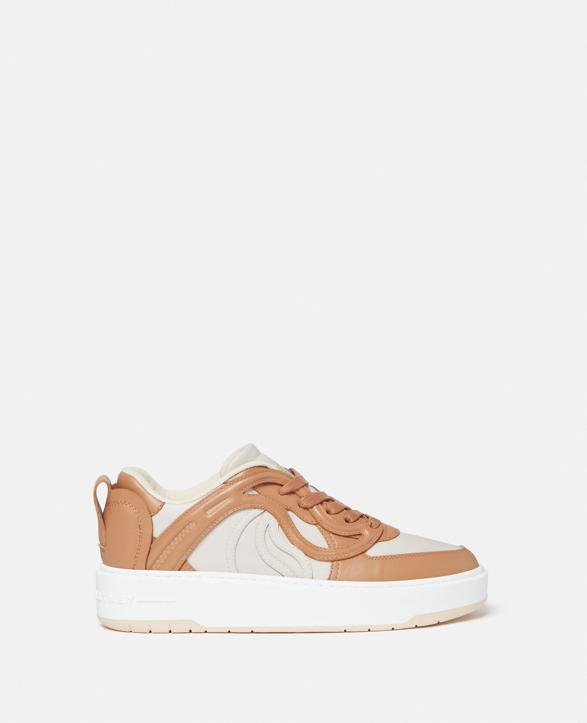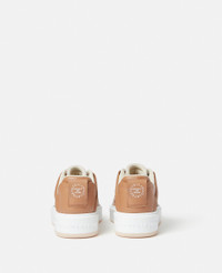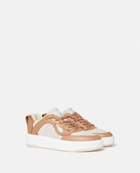 Item 810236E001062014 An embodiment of our new season of conscious values and Stella’s circular vision, the S-Wave 2 mid-top trainers are our most sustainable trainers to date. These trainers are crafted from a plant-based alternative to animal leather, sourced from grape waste, and the most environmentally responsible polyurethane. Its sole is created using pre-consumer recycled TPU, while its solvent-less suede tag communicates: ‘SUITABLE FOR VEGANS.’ - Colour: Ecru/Brandy - Ecru with brandy tan brown trims - Alter Mat vegan alternative to animal leather, sourced from grape waste - S-Wave at quarter - Round toe - 'SUITABLE FOR VEGANS' solvent-less suede heel tab - Lace-up fastening, and Velcro strap at ankle - Single midsole design - Fully lined - Made in Italy Product Care & Fit Advice - Care: Spot clean only with soft damp cloth - Composition: Upper: 53% recycled polyester, 47% bio-based polyurethane, Lining: 84% recycled polyamide, 16% elastane, Outsole: 75% thermoplastic polyurethane, 25% polyurethane - 25mm sole - Fits true to size - All of our shoes are made from non-leather materials as part of our cruelty-free ethos.