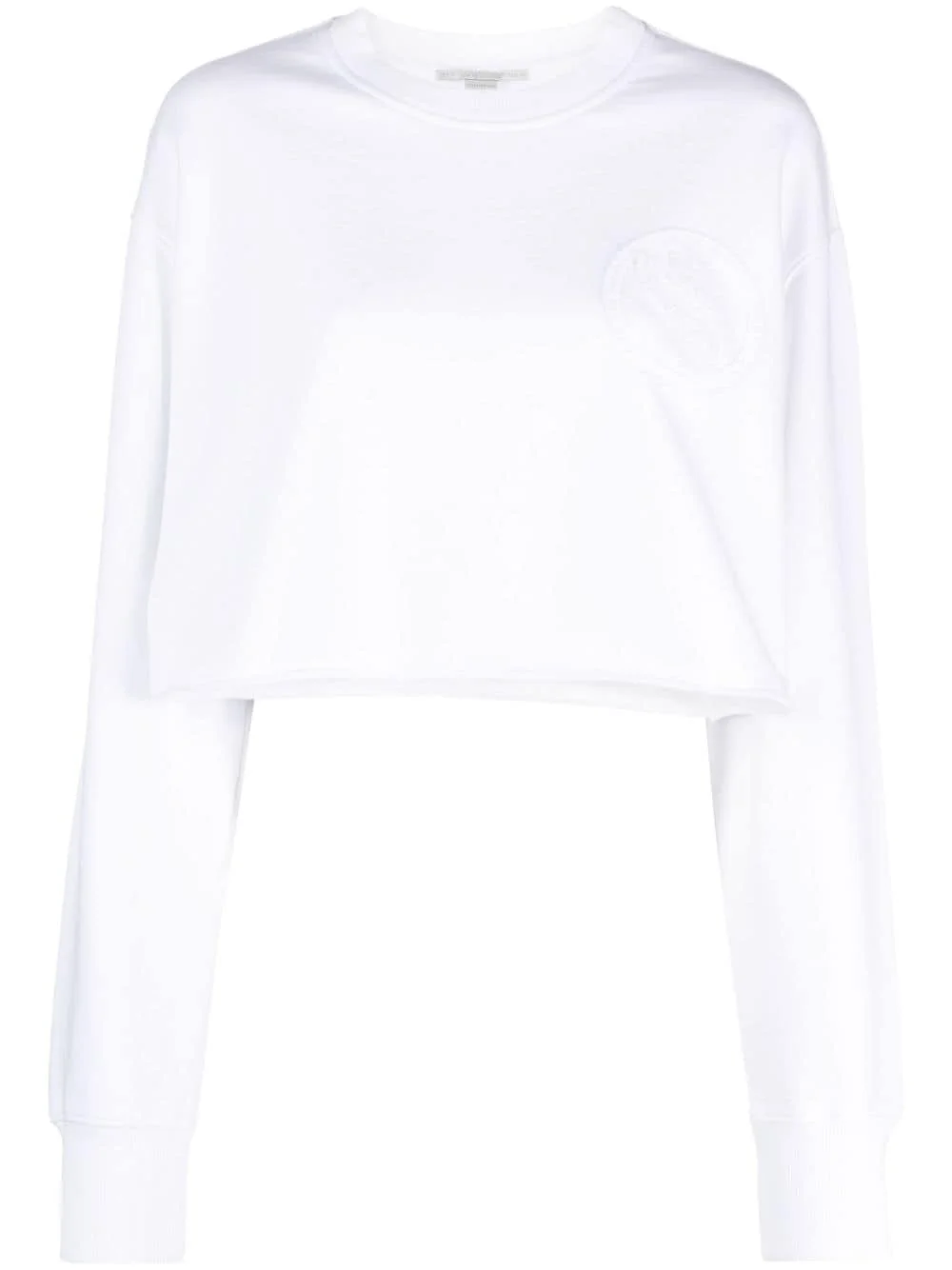 S-Wave cropped sweatshirt Highlights - White - Cotton - Logo patch at the chest - Crew neck - Drop shoulder - Long sleeves - Cropped Imported Composition Cotton 100% SIZE & FIT Model measurements Height 5 ft 11 in(1.8 m) Bust/Chest 33.07 in(84 cm) Hips 37.4 in(95 cm) Waist 25.19 in(64 cm) FittingInformation Designed to be unstructured, offering a loose fit throughout Made from a midweight non-stretch fabric, this piece offers minimal elasticity when worn This piece fits true to size – take your usual size Washing instructions Machine Wash