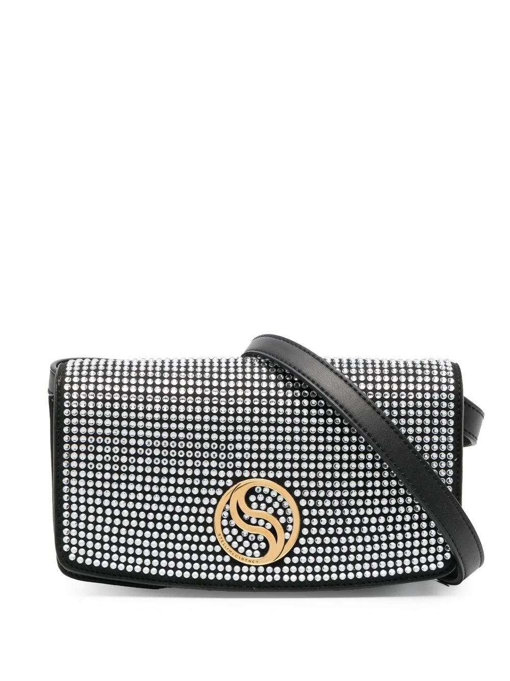 S-Wave crystal-embellished crossbody bag Stella McCartney gives its S-Wave crossbody bag a glittering update for SS23. Crafted from a plant-based alternative to leather, the label’s gold-tone circular logo plaque is contrasted by faceted crystals arranged in a linear fashion. Highlights - Black - Crystal embellishment - Gold-tone logo plaque - Foldover top with magnetic fastening - Single shoulder strap - Partitioned compartment - Internal zip-fastening pocket Made in Italy Composition Outer: Polyamide 50%, Polyurethane 50% SIZE & FIT Model measurements Height 5 ft 11 in(1.8 m) Bust/Chest 31.49 in(80 cm) Hips 36.61 in(93 cm) Waist 24.4 in(62 cm) Measurement DEPTH 1.57 in(4 cm) HEIGHT 3.93 in(10 cm) STRAP 23.62 in(60 cm) WIDTH 7.87 in(20 cm)