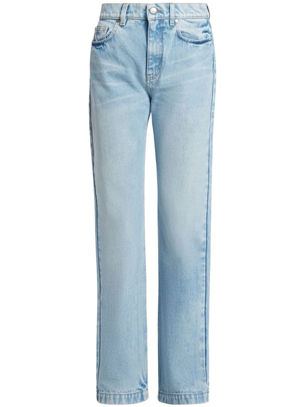 S wave-patch straight-leg jeans Highlights - Light blue - Cotton blend - Washed denim - Straight leg - Belt loops - Classic five pockets - Logo patch and s wave patch to the rear - Front button and zip fastening Made in Italy Composition Polyester 52%, Cotton 48%