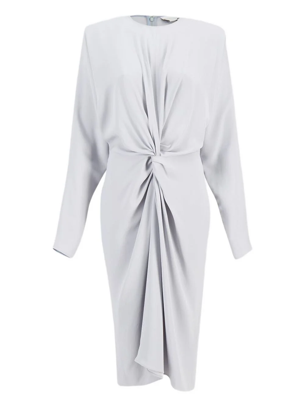 satin draped-front midi dress Highlights - Light grey - Twisted front knot - Long sleeves - Concealed rear zip fastening - Crew neck Imported Composition Acetate 73%, Viscose 27%