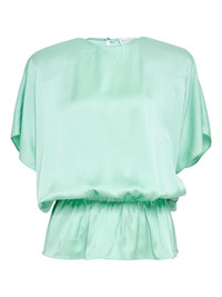 elasticated satin blouse Highlights - Green - Round neck - Short sleeves Imported Composition Satin 100% Washing instructions Read Manufacturer Guidelines