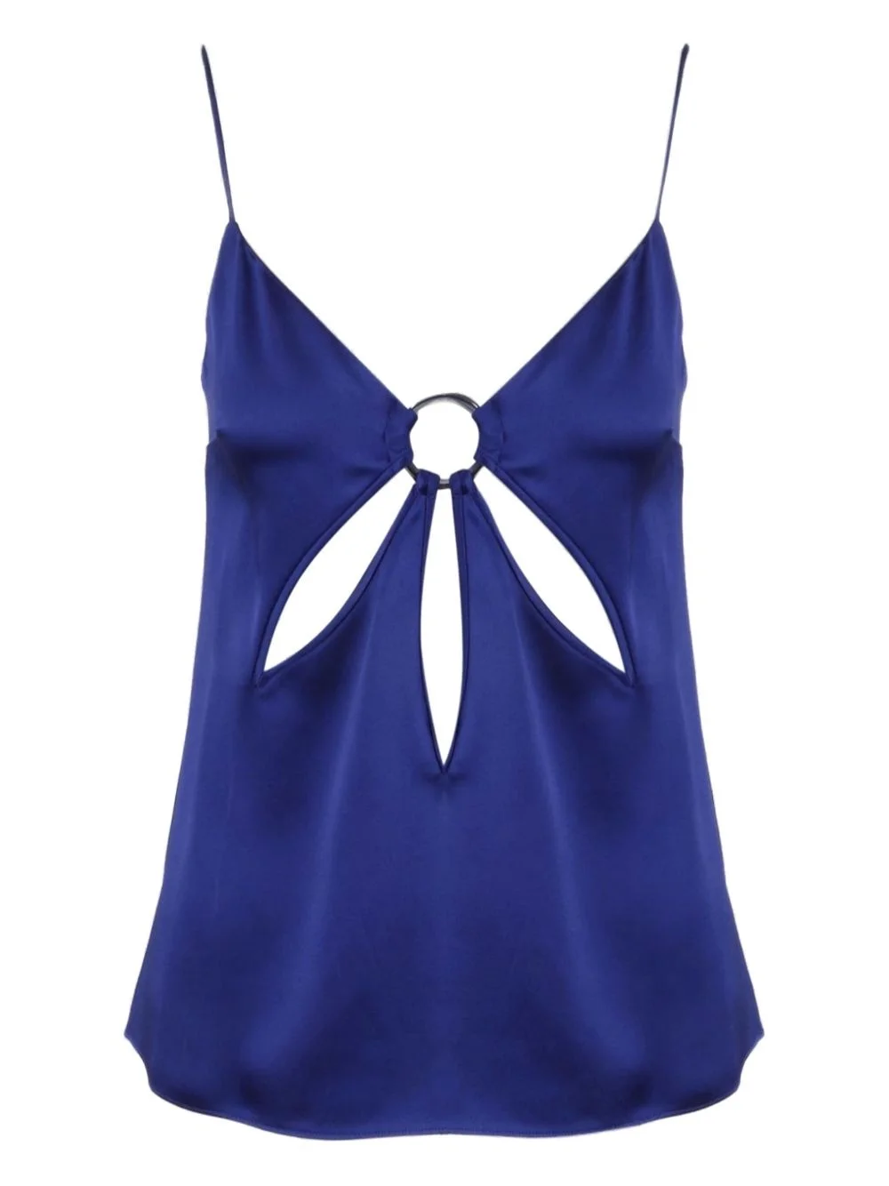 satin top Highlights - Electric blue - Cut-out detailing - Ring embellishment - V-neck - Thin shoulder straps Made in Italy Composition Acetate 64%, Viscose 36%