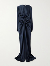 Twist-front cutout satin gown Navy