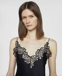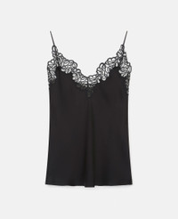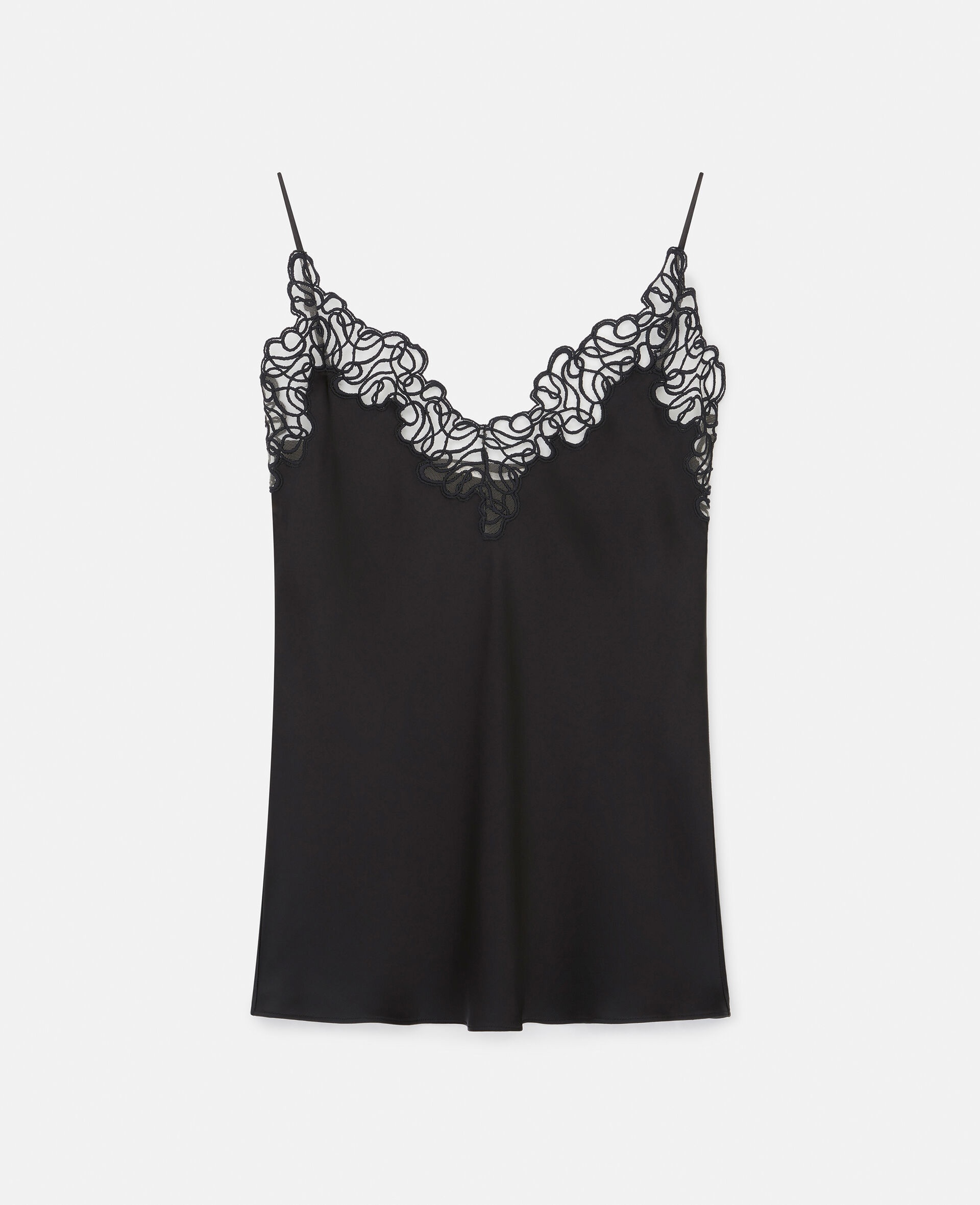 Reflecting this season's artistic and lingerie influences, this cami is consciously crafted from FSC-certified, traceable acetate and viscose satin – delicately finished with a monochromatic scribbled lace trim at the neckline. - Colour: Black - Forest-friendly acetate and viscose blend - Black and white scribbled lace trim at sweetheart neckline - Rolled spaghetti straps - Made in Bulgaria Product Care & Fit Advice - Care: Dry clean only - Composition: Main fabric: 65% acetate, 35% viscose, Secondary fabric: 82% cotton, 11% polyester, 7% polyamide - Größengetreuer Schnitt - Für eine normale Passform entworfen - Leichter, nicht dehnbarer Stoff