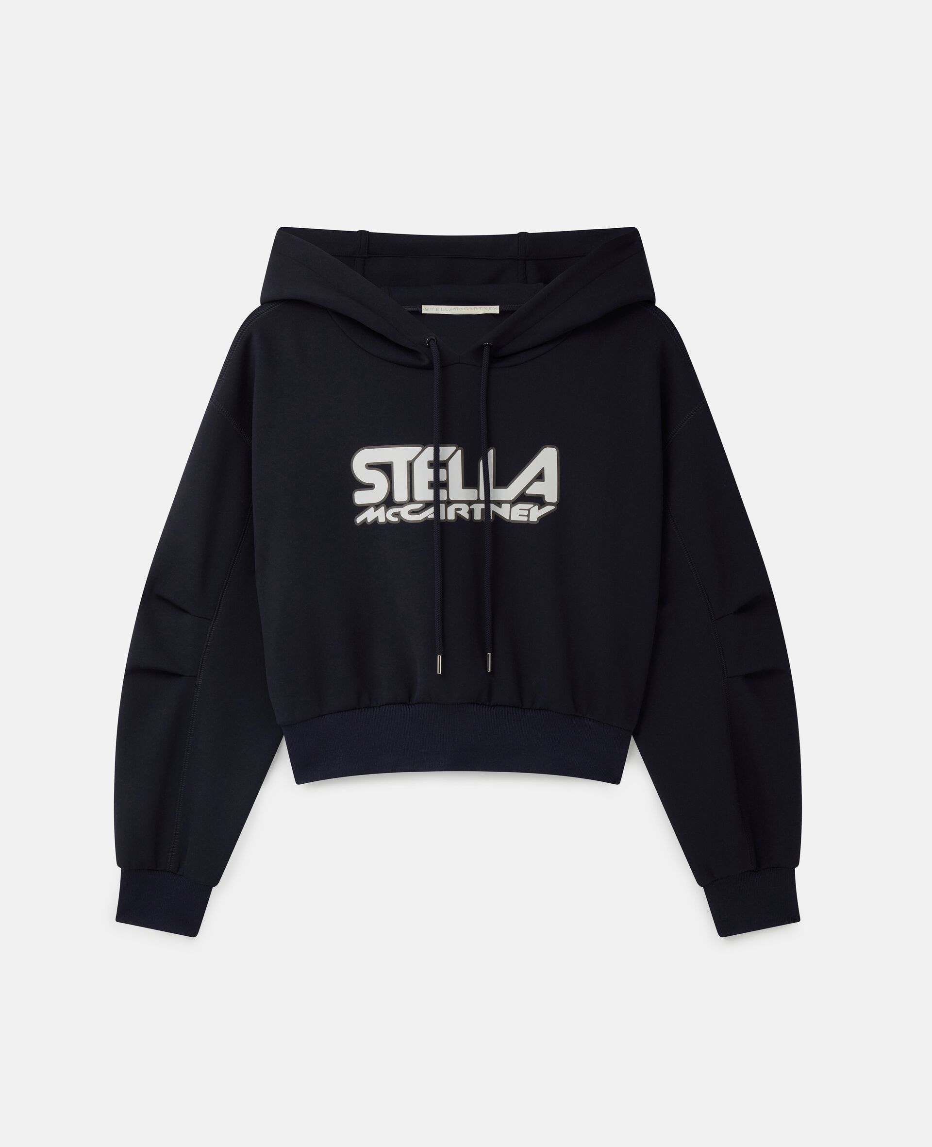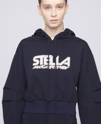 - Color: Navy - Cropped hoodie - Stella McCartney logo print at the front - Stitch detailing, drawstrings - Made in: Italy - Care: Machine washable 30°C - Composition: 87% Polyamide, 13% Elastane - Fits true to size - Designed for a regular fit - Mid-weight, slightly stretchy fabric - Model is 5ft 10in/ 1.78m, is a size UK08 and wears a size IT40 (US04/ UK08/ FR36)